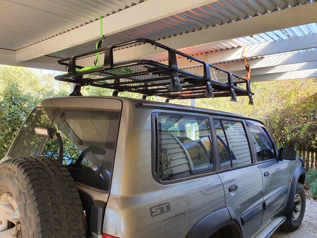 A roof-rack was next, to carry all that cool stuff like a high-lift jack and shovel, swag and awning for when we decide to ditch the van and venture out onto the rougher roads for a few nights. Fitting it though, was not an easy task. Mr. Flashpakerstravel thought he could fit it himself but raising a 50kg roof rack over 6 feet high was not going to be easy. Still, nothing that couldn’t be achieved with a few ratchet straps and a little ingenuity. After all, the Egyptians built the pyramids with not much more!